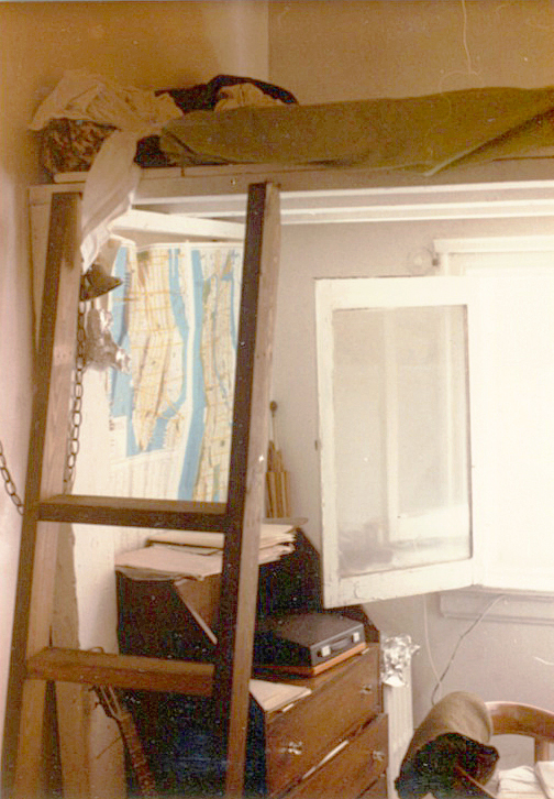 New York’a ikinci kez varışımda kiralamaya paramın yeteceği bir yer bulmakta epeyce zorlandım, birkaç ay tiyatro stüdyosunda uyku tulumunda, tanıdıkların kanepelerinde falan yattım. Sonra yaşlı bir heykeltraş tanıdık, “Izzy,” “benim evin çatı katında bir oda boşaldı, istersen gel, kirası iki yüz elli dolar ama söyleyeyim, çok küçüktür” dedi. Çok küçükten kastı 13 feet’e 8 feet, yani 4 metreye 2,5 metre bir hücre idi. Tavan epeyce yüksek olduğundan yatak için enlemesine, beş basamaklı bir merdivenle çıkılan bir platform yapılmıştı. 1,75 boyumla sığabiliyordum ama yataktayken gerinme olanağım yoktu. Onun dışında, kafanı dışarı uzattığında Hudson nehrinden küçük bir parça görebildiğin bir pencere, küçük bir buzdolabı, onun üstünde iki gözlü bir elektrik ocağı ve bir de lavabo vardı. Kendi kapı numarası, elektrik sayacı olan, telefon bağlatabildiğin yasal bir apartman dairesiydi bu.