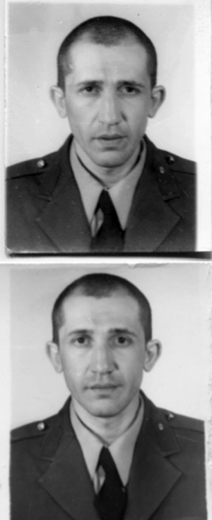 Tuzla Piyade Okulu’ndaki eğitimin başlarında kimlik fotoğrafı çekilmesi için fotoğrafçının önünde kuyruğa girdik. Sıra bana gelince ben de iskemleye oturdum, fotoğraf çekildi (bkz. üstteki foto). Kalkarken yüzbaşının “O ne biçim surattı öyle be? Bir daha çek o adamı” bağırtısıyla tekrar oturdum, yeniden çekildi (bkz. alttaki foto).