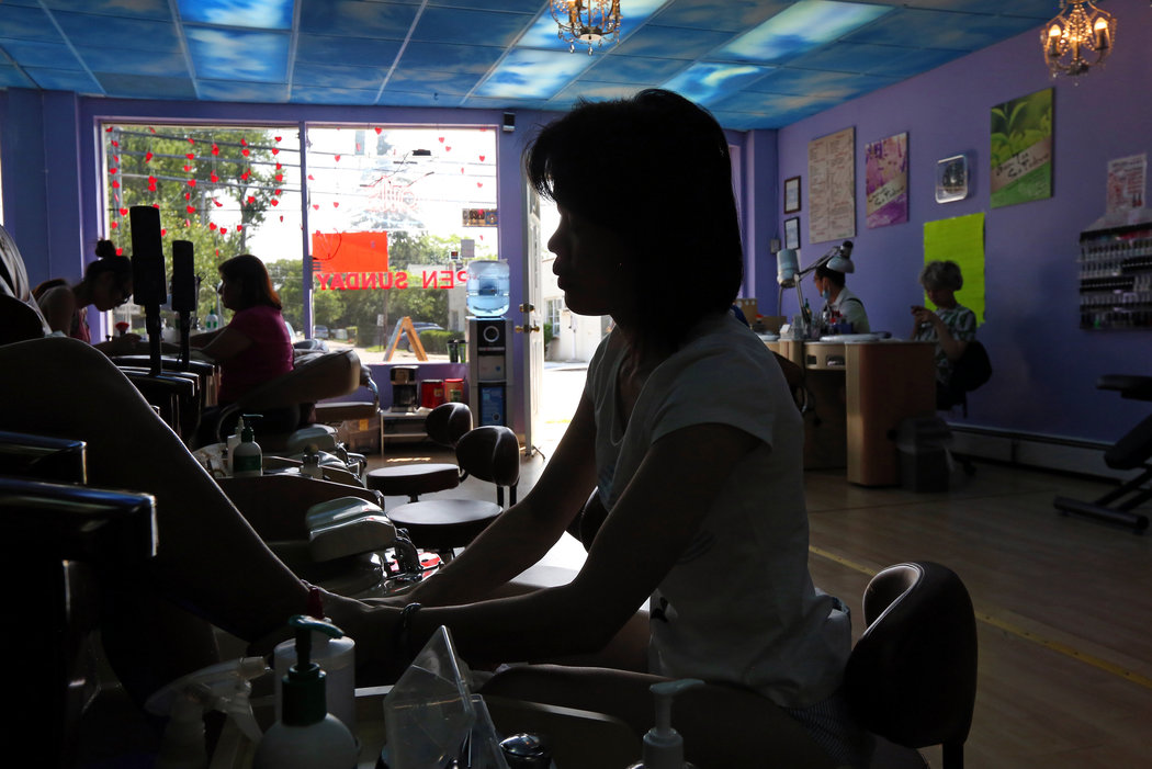 Tırnak salonlarında çalışanların büyük çoğunluğu yeni göçmen kadınlar. Çoğu kaçak ve İngilizce bilmiyor, yani ücret konusunda patronla pazarlık yapacak ya da patronu şikayet edebilecek konumda değiller. Ellerine geçen para saat başına 3-5 dolar, artı (patron izin veriyorsa) bahşiş oluyormuş. (Şu anda New York’ta yasal asgari saat ücreti 8,75 dolar.)